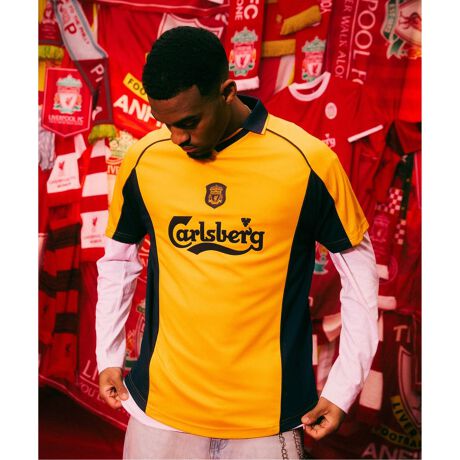 LFC メンズ 00/01 アウェイ シャツは、ロビー・ファウラー、スティーブン・ジェラード、マイケル・オーウェンなどのクラブの伝説的選手たちが 2001 年の FA カップ決勝で優勝したときに着用したことで有名なそのシーズンのアウェイ シャツからインスピレーションを得ています。