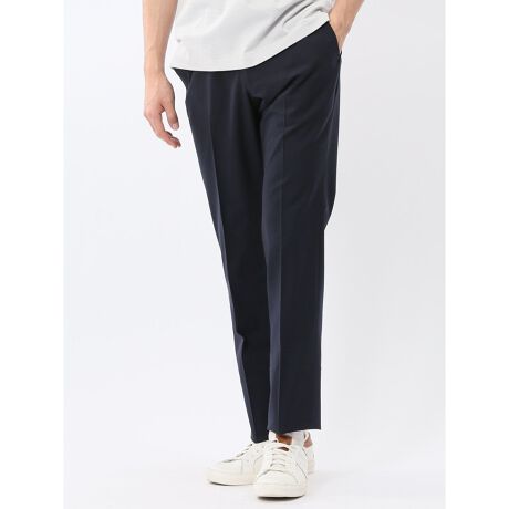 すっきりとしたノータックのテーパードパンツです。センタープリーツ加工、フロントファスナー、ベルト通し付き、前後ポケット付き、裾部分は未加工です。