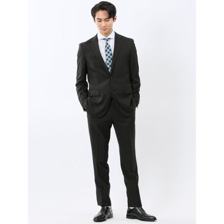 ストレッチウォッシャブル スリムフィット 2ボタン2ピーススーツ 組織黒