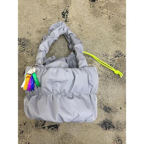 【ふんわり巾着で2WAY】ぽっこりギャザーが可愛い、トートにも巾着にもなるcheekの「pokkori kincyaku 2way tote」。【持ち方自在の巾着トート】巾着を内側に折り込めばすっきりトートに早変わり、気分で切り替えられる2WAY仕様◎【荷物が増えても安心設計】附属の光沢テープベルトで斜め掛けや肩掛けもできるから、手がふさがる日も頼れる存在!【ギャザーが生む柔らかフォルム】ボンディング加工でふんわり仕上げた丸みのあるシルエットが、コーデに大人可愛い印象。【小物も安心のミニポケット】フロントのマグネット付きポケットにイヤホンや鍵をさっと収納、中身が飛び出さない安心感♪【リサイクル素材の軽やか仕立て】ツイル感のあるリサイクルポリエステル生地で環境にも優しく、毎日持ちたくなる軽やかさ〇【遊び心あふれるチャーム】アイコンの7カラーリボンチャーム付きで、バッグにさりげない彩りと個性をプラスする一品。