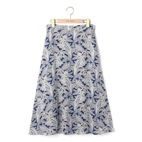 [型番:72263141401]ボヘミアンなペイズリー柄が目を惹く、ひざ下丈のスカート。フレアに広がるドレープ感のあるシルエットが優雅さを演出。着脱がスムーズかつ美しいフィット感のサイドジップを採用。トップスをインしてもアウトにしても映える、季節を問わずコーディネートの主役になる華やかなデザインのアイテムです。※商品画像はサンプルを使用しているため、実際の商品と色味などの仕様が異なる場合がございます。予めご了承ください。