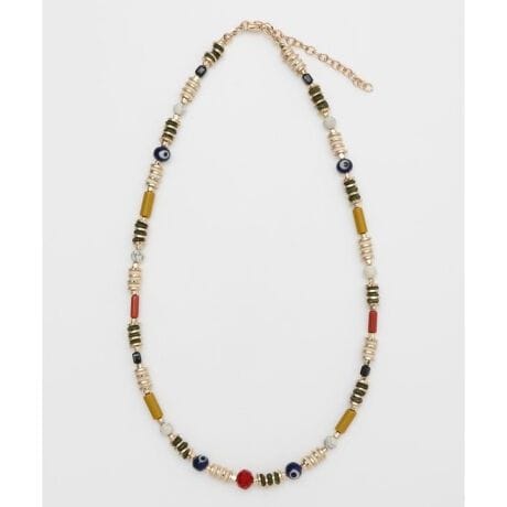 ナザルモチーフをあしらったビーズネックレス。魔除けとして親しまれるナザルの存在感が、日常にさりげないお守りの意味を添える。異素材ビーズの組み合わせがスタイルに洗練されたニュアンスを加えます。