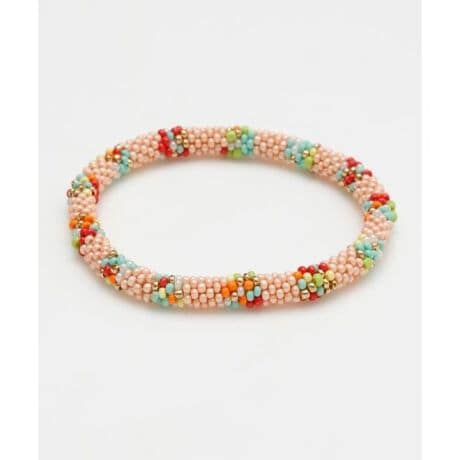 インドビーズワークで仕立てたカラフルなビーズブレスレット。軽やかなつけ心地で、手元に彩りとリズムを添えてくれる。普段のコーディネートにさりげなく華やかさをプラス。