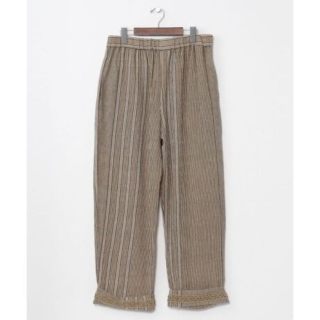 [型番:IMC-6105-2026]南インド伝統の織柄を用いた綿素材のストレートパンツ。裾のレース切り替えがアクセントになり、リラックス感のある一着。