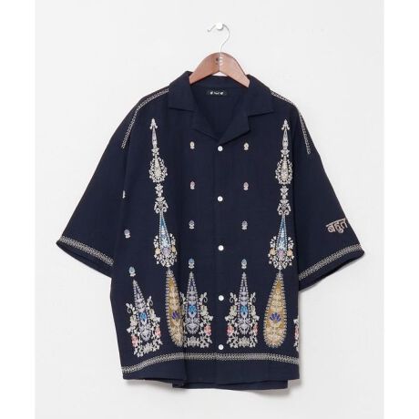 [型番:ILL-6112-2026]インドの民族衣装レヘンガから着想を得たメンズ開襟シャツ。前立てや袖口には繊細な刺しゅうが施され、袖口には「とても美しい」を意味するヒンディー語をビーズで表現。ディテールにこだわった一枚。