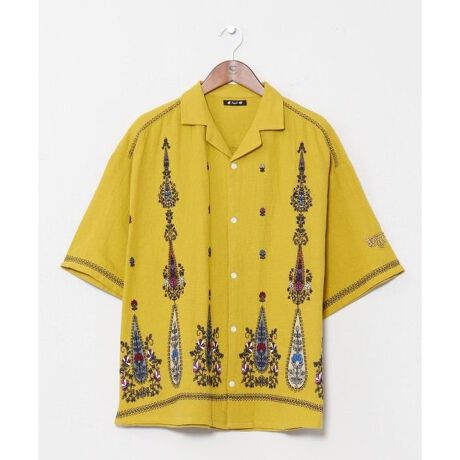 [型番:ILL-6112-2026]インドの民族衣装レヘンガから着想を得たメンズ開襟シャツ。前立てや袖口には繊細な刺しゅうが施され、袖口には「とても美しい」を意味するヒンディー語をビーズで表現。ディテールにこだわった一枚。