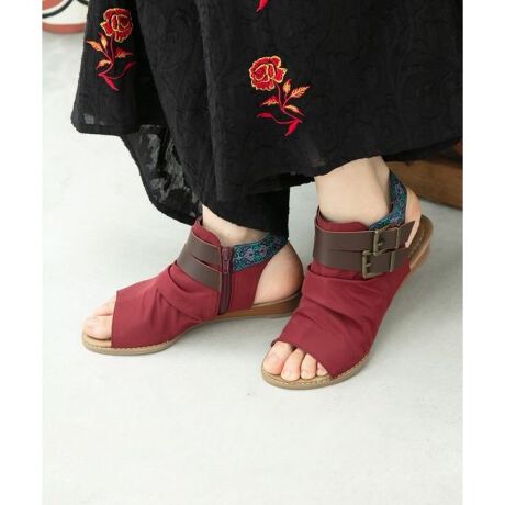 [型番:CWSP6101-2026]程よい高さのウエッジソールでホールド感のあるサンダル。光沢感のある生地と織りテープがアクセントになり、エスニックから綺麗めコーデまで幅広く活躍。