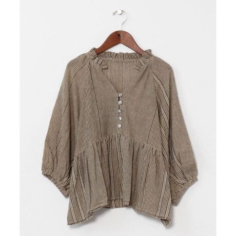 [型番:IMC-6101-2026]パフスリーブが印象的なブラウス。南インドの風合い豊かな綿素材を使用し、ゆったりと着られるリラックス感のあるデザイン。