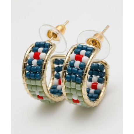 [型番:IGFZ6103-2026]ジオメトリック柄で編み上げたインドビーズワークのピアス。軽やかでミニマルなデザインが耳元を彩り、普段使いにもなじむアクセサリー。