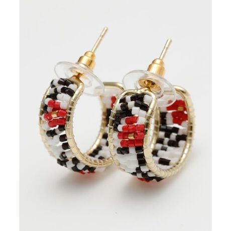 [型番:IGFZ6103-2026]ジオメトリック柄で編み上げたインドビーズワークのピアス。軽やかでミニマルなデザインが耳元を彩り、普段使いにもなじむアクセサリー。