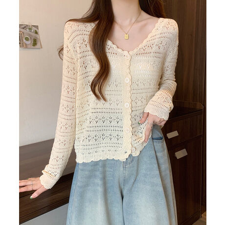 軽やかな透け感で、女性らしさを引き立てる透かし編みカーディガン