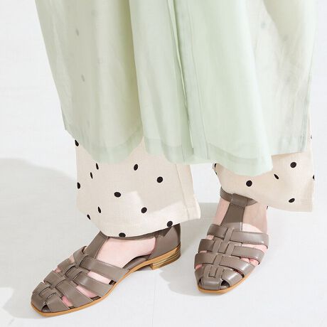 甲全体を覆う編み込み風デザインが、足元にアクセントをプラスしながらも、抜け感を演出してくれる人気のグルカシューズ。