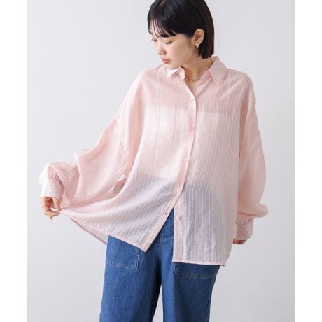 軽やかな透け感が魅力のシアーシャツ。ワイドなシルエットでゆったりと着れて、優しい色合いが柔らかな印象をプラス。