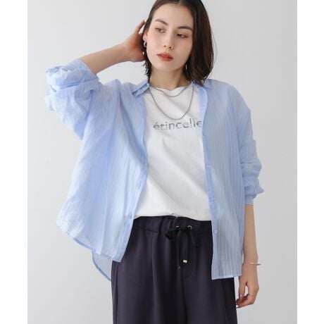 軽やかな透け感が魅力のシアーシャツ。ワイドなシルエットでゆったりと着れて、優しい色合いが柔らかな印象をプラス。