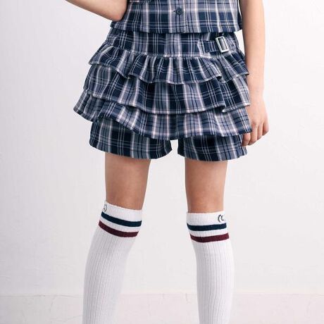 華やかなチェック柄のスカパン。