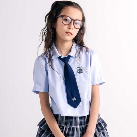 ブロード生地の半袖シャツとネクタイ付きの女の子用セットアイテム。