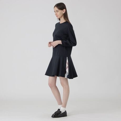 [型番:55J06729__]◆一枚できまるポンチドレス【Design】一枚さらりと着るだけでスタイリングが決まるカットソーポンチドレスです。ややローウエストに設定したウエスト切替からフレアに広がるスカートがかわいらしい印象のデザインです。スカート脇のクレストブリッジチェック切り替えがアクセントになります。