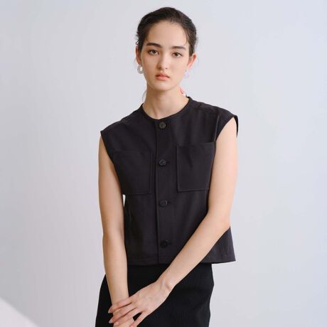 【ジャケットインでも1枚でアウトにしても着られる着回し力抜群のコンパクトジレ】