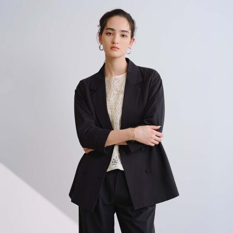 【抜け感あるシルエットが ON/OFF 着回しやすいダブルジャケット】