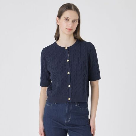コットンポリエステルケーブルニットカーディガン