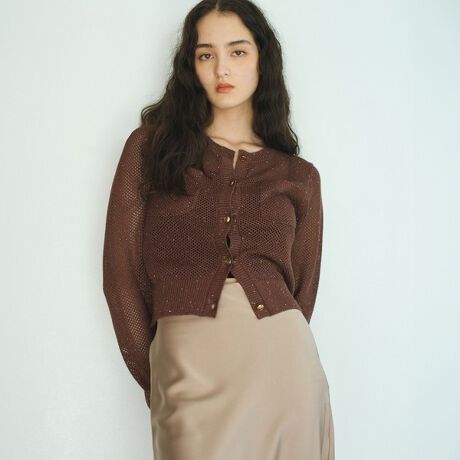 【控えめなきらめきと上品なメッシュの透け感でリュクスな着映えカーディガン】