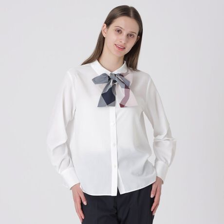 [型番:55M03722__]◆クレストブリッジチェックのリボンがポイントのシャツブラウス【Design】胸元のクレストブリッジチェックリボンがポイントのシャツブラウスです。リボンは取り外し可能なので、シンプルなシャツとしてもご使用いただけます。