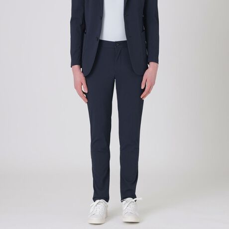 軽量テクニカルシアサッカー素材を使用したイージートラウザーズです。シャープな印象を持たせる細身のシルエットながらも、ウエスト部分にはゴムシャーリングを施し快適な履き心地。シンプルなデザインの為、コーディネートを選ばず幅広いシーンで着用が可能です。