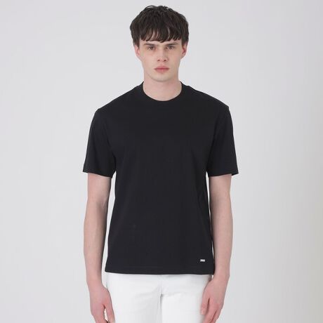 ジャケットのインナー合わせに開発されたキレイ目Tシャツ。衿の後ろ側をやや高く設定することでジャケットの衿登りとのバランスを美しく保ちつつ、皮脂による衿裏汚れも防ぐ仕様に。背幅を胸幅よりも広く設定することで、人体の形に沿った立体的なパターンを作り出しています。さらに脇部分を切り替える事で、より立体的な設計に。脇部分にシャドーのクレストブリッジチェック柄をあしらうことでブラックレーベルらしさを演出しています。肩傾斜やシルエットはインナーとしてもたつかないようにスッキリと仕上げています。左裾のロゴ入りのシャドーのチェック柄メタルプレートが高級感を演出します。