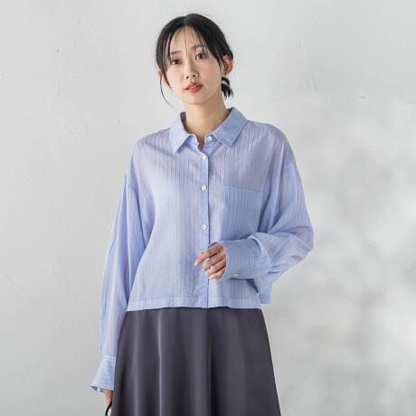 デザインはシンプルなシャツをクロップド丈にアレンジ。
