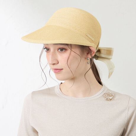 Athena New Yorkのバックリボンキャップ。人気の高いAthena New Yorkの定番で、きれいなシルエットのキャップです。バックリボンは、ベースのグログランテープにデザインリボンを重ねた凝ったデザインです。