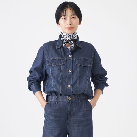 Gジャンのようなディティールを取り入れたシャツデニム。重たくならない肩の落ち具合や、着やすいシルエットにこだわり、ジャケット未満・シャツ以上のバランスで着こなせる一枚に仕上げています。程よい光沢感を活かしたデニムシャツジャケットとして幅広いスタイリングで楽しめます。
