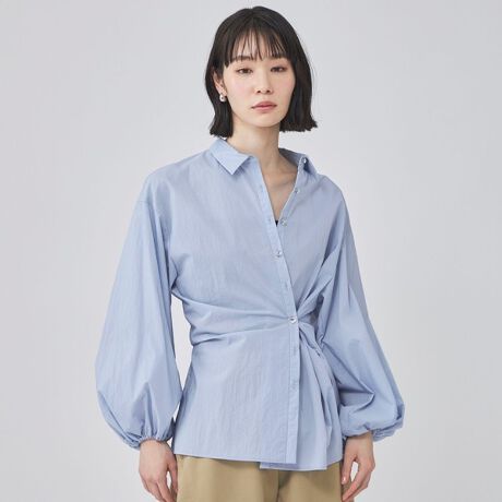 リラックスフィットで抜け感のある着こなしに。脇のボタンを留めてカシュクールにすれば、上品でメリハリのあるスタイルに変化します。袖口はゴム仕様で、ふんわりとしたシルエット調整も簡単に出来ます。