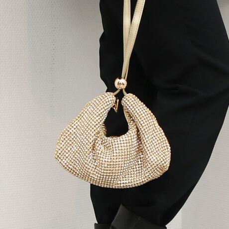 キラキラと輝くカットガラスを贅沢にあしらった、華やかさが際立つワンハンドルのパーティバッグ。