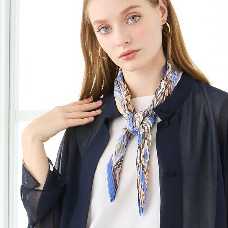 シンプルなニットの衿元、コートの衿元に。またバッグに軽く結んでもお洒落。