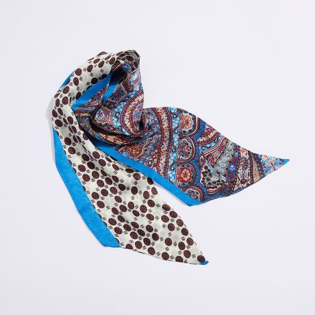 細幅のロングストール。幾何柄×ペイズリープリントが施されています。