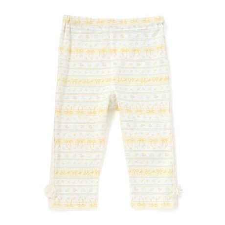 サイドのレーステープと、裾にあしらった花シフォンが可愛いアクセントになった女の子用6分丈レギンス。