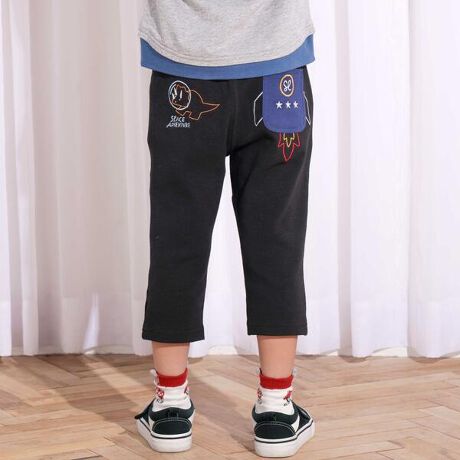 後ろポケットのモチーフがカラーごとに異なり、物語を感じさせるデザインが楽しい男の子用7分丈パンツ。