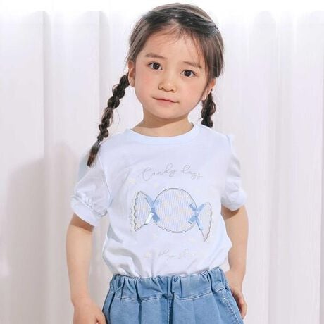 ふんわりとしたパフ袖が女の子らしい、思わず目をひく半袖Tシャツ。