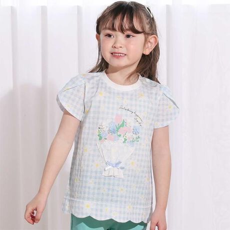 透け感のあるレーシー天竺を使用した、華やかで涼しげな女の子用半袖Tシャツ。