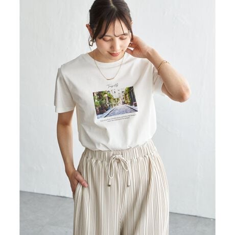 きれいめな印象で着られるコットン100%の素材を使用したロゴフォトプリントTシャツ。
