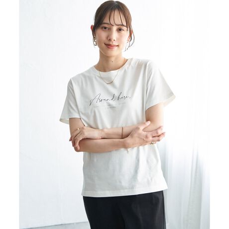 きれいめな印象で着られるコットン100%の素材を使用したロゴフォトプリントTシャツ。