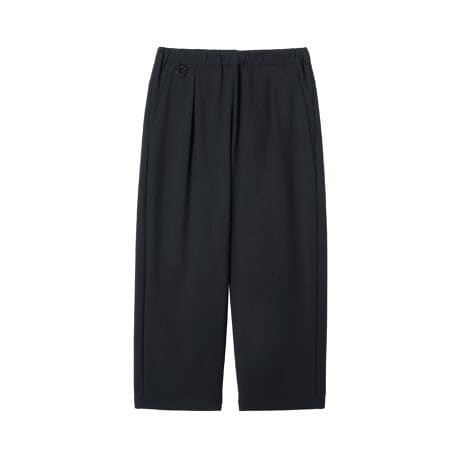 ストレッチ素材を採用したワイドシルエットパンツ。
