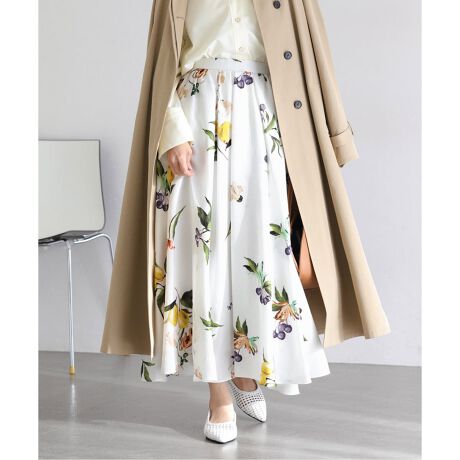 ボタニカルプリントが春の装いに彩を添えるフレアスカート。