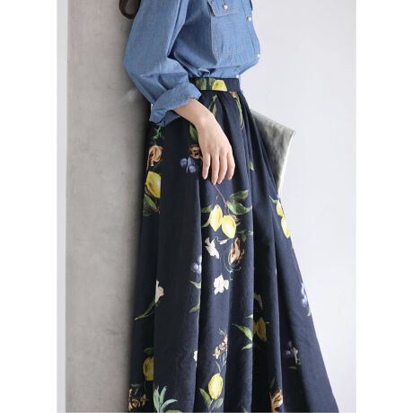 ボタニカルプリントが春の装いに彩を添えるフレアスカート。