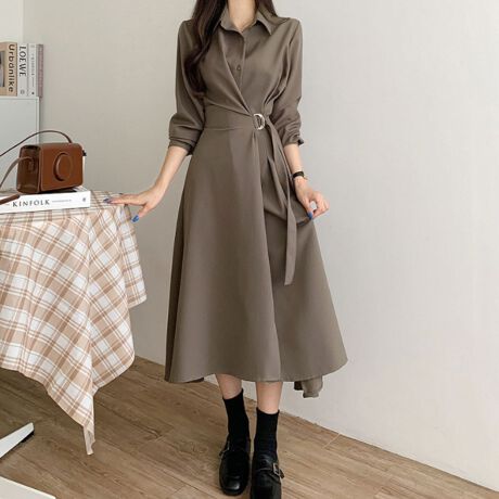 -ウエストマークで自然にスタイルアップ。上品さ漂う大人のシャツワンピース。