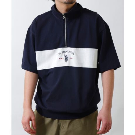 【plm41100】U.S. POLO ASSN. ビッグシルエットハーフジップTシャツ