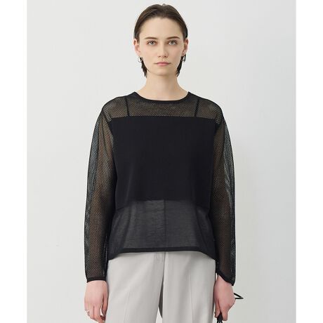 ■デザインベーシックなデザインにトレンド感のあるメッシュを取り入れたニットプルオーバーです。軽やかな程よい透け感でこなれ感のあるスタイリングが完成します。身頃の中間部分は透けの少ない編地にすることで大人の女性にも取り入れやすい様こだわっています。インナーにキャミソール等を入れ単品での着用はもちろん、ジャケットやブルゾンの中に着用するのもおすすめです。