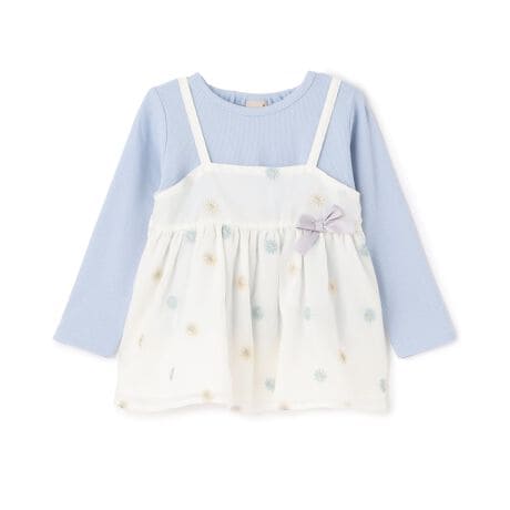 お花の刺しゅうをちりばめたチュニックとインナーのセットです。ギャザーで広がる華やかなシルエットで、女の子らしいコーデが完成します。インナーの後ろ衿ぐりはお着替えしやすいゴム仕様。すっきりとしたパンツやデニムアイテムを合わせるのがおすすめです。内側にお名前を記入できるタグつき。