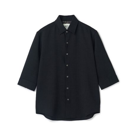 表面の凹凸感が奥行きを生むポリエステルブッチャー素材を使用したシャツ。