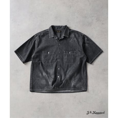 《予約》シャンブレー オープン カラー 半袖 シャツ